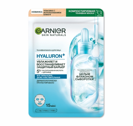Garnier Skin Naturals Тканевая маска для лица Подтягивающая с высокой концентрацией гиалуроновой кислоты