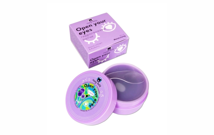 Holly Polly / Гидрогелевые патчи для глаз Open your eyes с Морским Коллагеном и экстрактом Черники