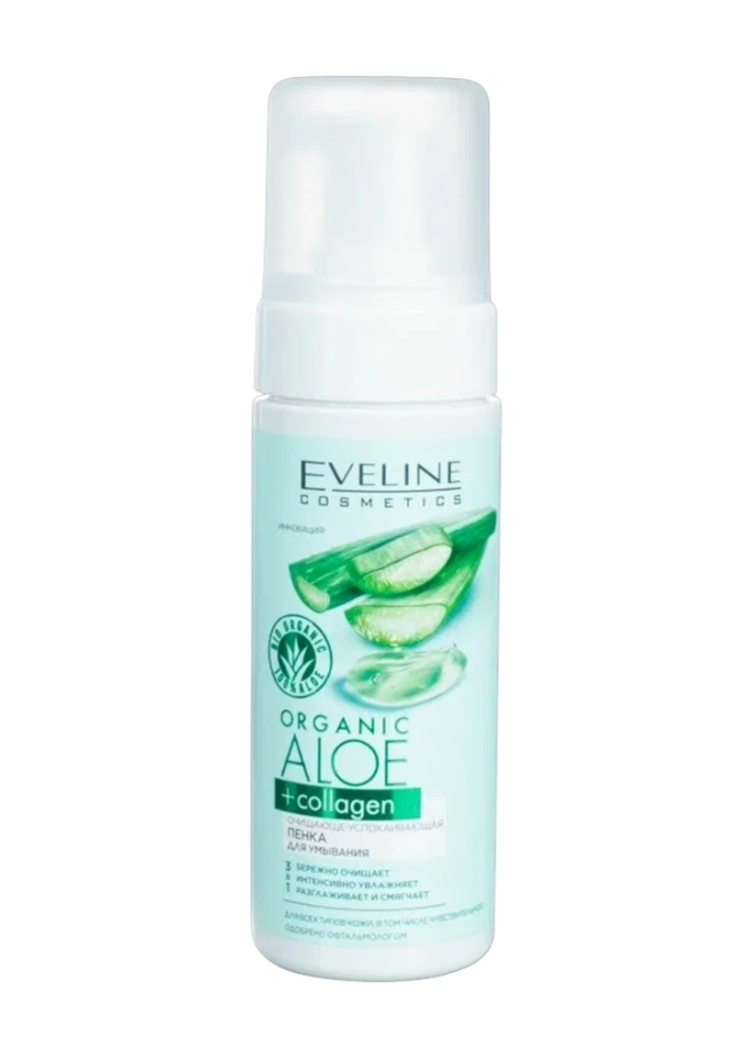 Eveline Organic Aloe+Collagen/Пенка для умывания очищающе-успокаивающая