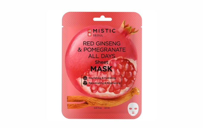 MISTIC RED GINSENG & POMEGRANATE ALL DAYS Sheet MASK Тканевая маска для лица с экстрактами красного женьшеня и граната