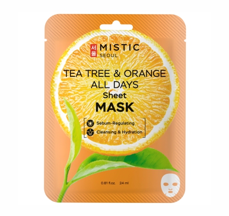 MISTIC TEA TREE & ORANGE ALL DAYS Sheet MASK Тканевая маска для лица с экстрактами чайного дерева и апельсина