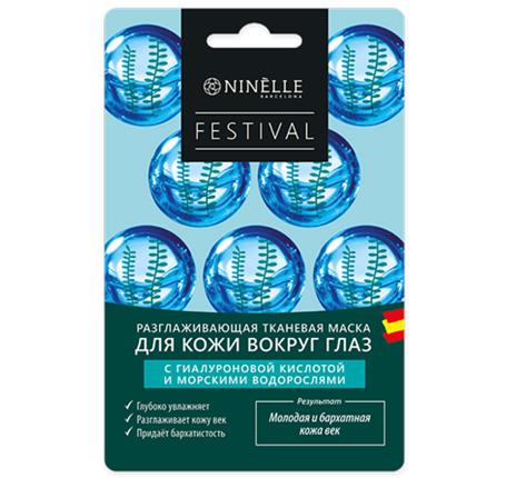 Ninelle Festival / Разглаживающая тканевая маска для кожи вокруг глаз с гиалуроновой кислотой и морскими водорослями