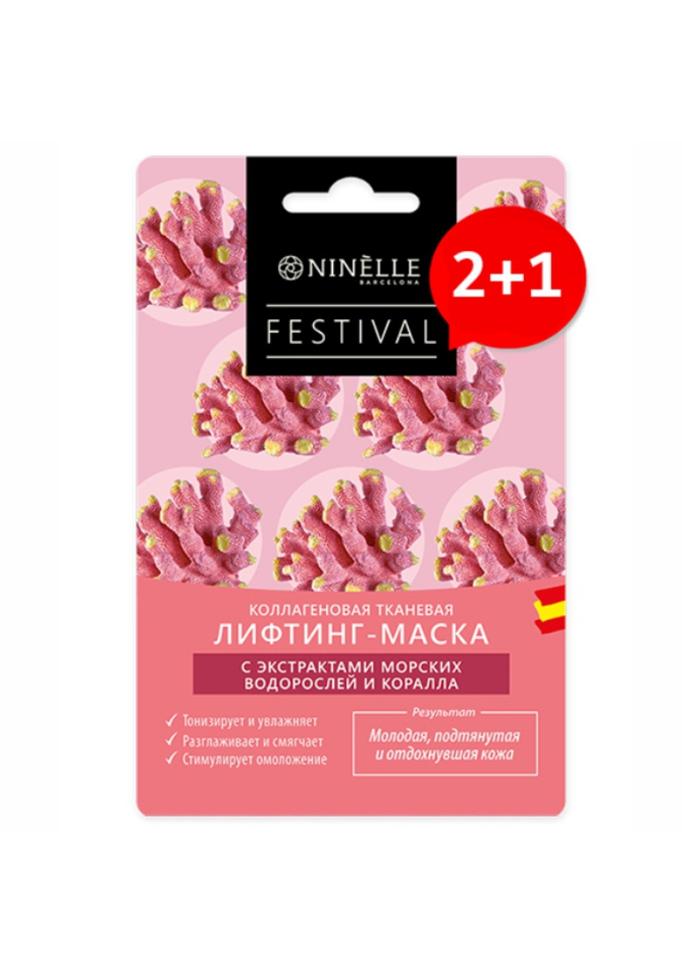 NINELLE FESTIVAL / КОМПЛЕКТ 2+1 УКРЕПЛЯЮЩАЯ КОЛЛАГЕНОВАЯ ЛИФТИНГ- МАСКА С ЭКСТРАКТАМИ МОРСКИХ ВОДОРОСЛЕЙ И КОРАЛЛА