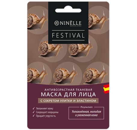 Ninelle Festival / Антивозрастная тканевая маска для лица с секретом улитки и эластином