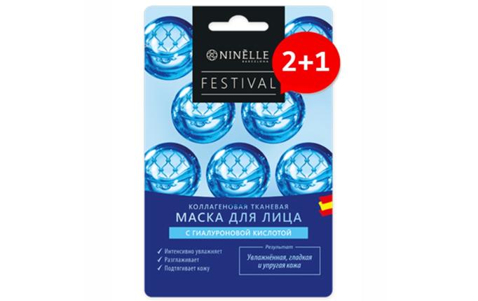 NINELLE FESTIVAL / КОМПЛЕКТ 2+1 КОЛЛАГЕНОВАЯ ТКАНЕВАЯ МАСКА ДЛЯ ЛИЦА С ГИАЛУРОНОВОЙ КИСЛОТОЙ
