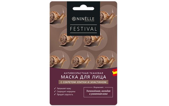 Ninelle Festival / Антивозрастная тканевая маска для лица с секретом улитки и эластином