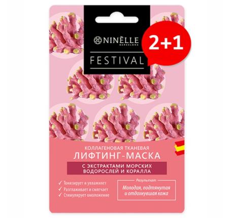NINELLE FESTIVAL / КОМПЛЕКТ 2+1 УКРЕПЛЯЮЩАЯ КОЛЛАГЕНОВАЯ ЛИФТИНГ- МАСКА С ЭКСТРАКТАМИ МОРСКИХ ВОДОРОСЛЕЙ И КОРАЛЛА