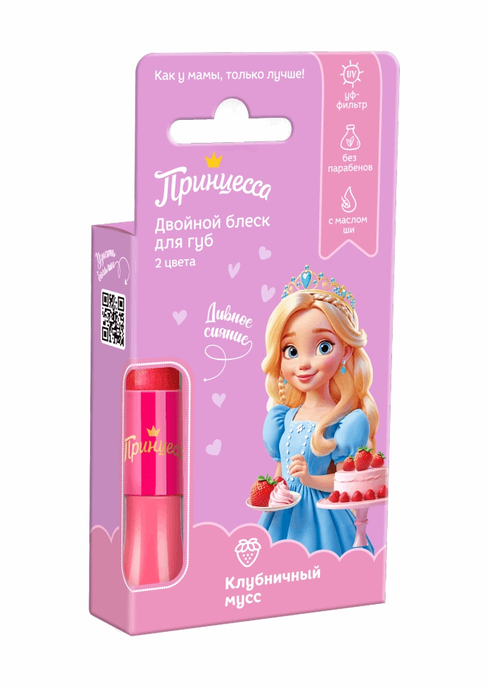 Принцесса / Блеск для губ двойной Клубничный мусс