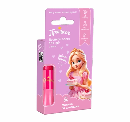 Принцесса / Блеск для губ двойной Малина со сливками