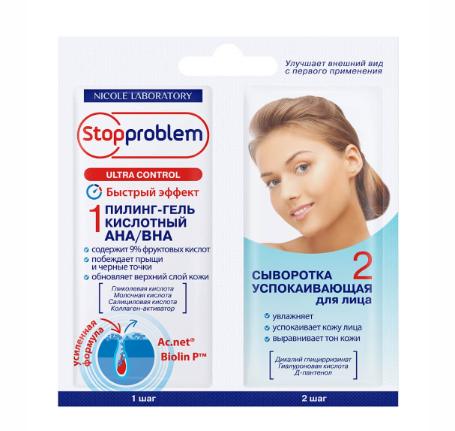 Stopproblem / 2 в 1 Пилинг-гель АНА/ВНА 9% + Сыворотка успокаивающая для лица