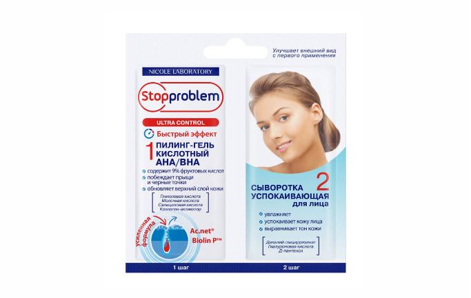 Stopproblem / 2 в 1 Пилинг-гель АНА/ВНА 9% + Сыворотка успокаивающая для лица
