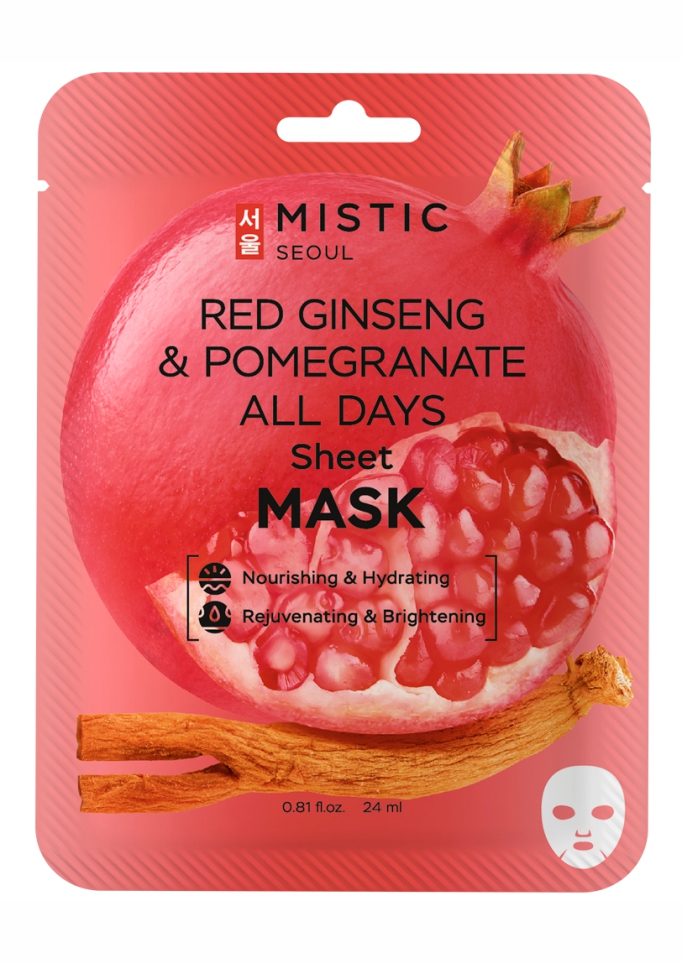 MISTIC RED GINSENG & POMEGRANATE ALL DAYS Sheet MASK Тканевая маска для лица с экстрактами красного женьшеня и граната