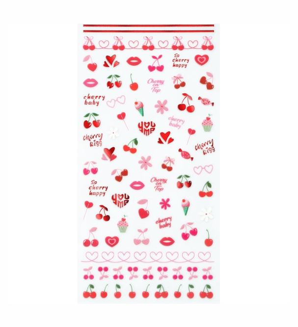 Прояви свою креативность с помощью стикеров для ногтей SO CHERRY happy cherry scented 01 With Extra Cherries, Please! Этот забавный набор содержит 78 восхитительных стикеров для ногтей, которые сделают тебя вишнево счастливой, а твой маникюр - неповторимым. Каждый стикер из коллекции обладает легким вишневым ароматом, добавляя необычный сенсорный элемент к твоему маникюру. С таким широким выбором стикеров ты получишь потрясающий результат в считаные мгновения. Применение: