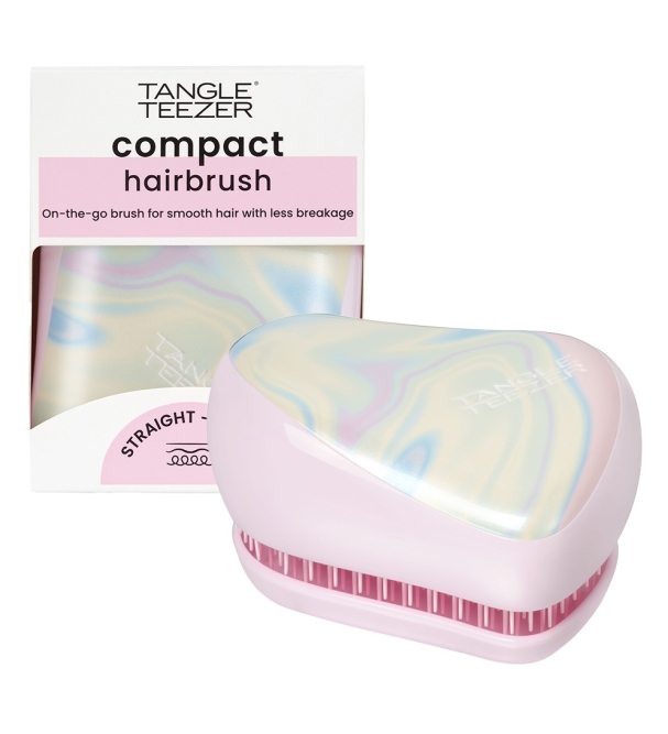Tangle Teezer Compact Styler Ice Cream Swirl — компактная версия знаменитой расчески Tangle Teezer, которая поможет поправить прическу в любой ситуации! Представлена в нежно-розовом корпусе с голубыми и желтыми переливами, имитирующими текстуру мороженого. Гибкие двухуровневые зубчики бережно распутывают волосы, не повреждая их. Благодаря компактной форме расческа поместится даже в небольшую сумочку, а плотно прилегающая крышка защитит зубчики от пыли и повреждений. Результат применения — гладкие и блестящие волосы. Подходит для всех типов волос. Не используйте с феном.