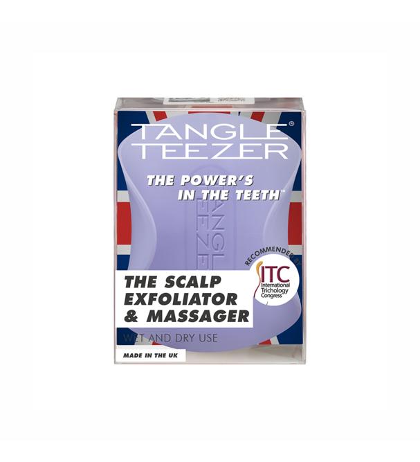 Tangle Teezer The Scalp Exfoliator and Massager Lavender Lite — многофункциональная щетка для массажа головы в стильном лавандовом оттенке. Благодаря зубчикам двух размеров щетка выполняет сразу две функции: очищение и массаж. Длинные гибкие зубчики помогают очистить кожу головы, удаляя ороговевшие частицы кожи и оказывая мягкое отшелушивающее действие. Для интенсивного очищения используйте в паре с шампунем. Короткие плотные зубчики приятно массируют кожу головы, что снимает общее напряжение, а также способствует улучшению кровообращения и росту волос. Размер, форма и расположение зубчиков подобраны таким образом, что пряди не путаются во время использования щетки. Благодаря эргономичной форме и матовому покрытию щетку удобно держать в руке, и она не выскальзывает при контакте с водой. Подходит для применения на влажных и сухих волосах. Не предназначена для расчесывания волос, а также для использования на воспаленной и чувствительной коже. Не используйте с феном.