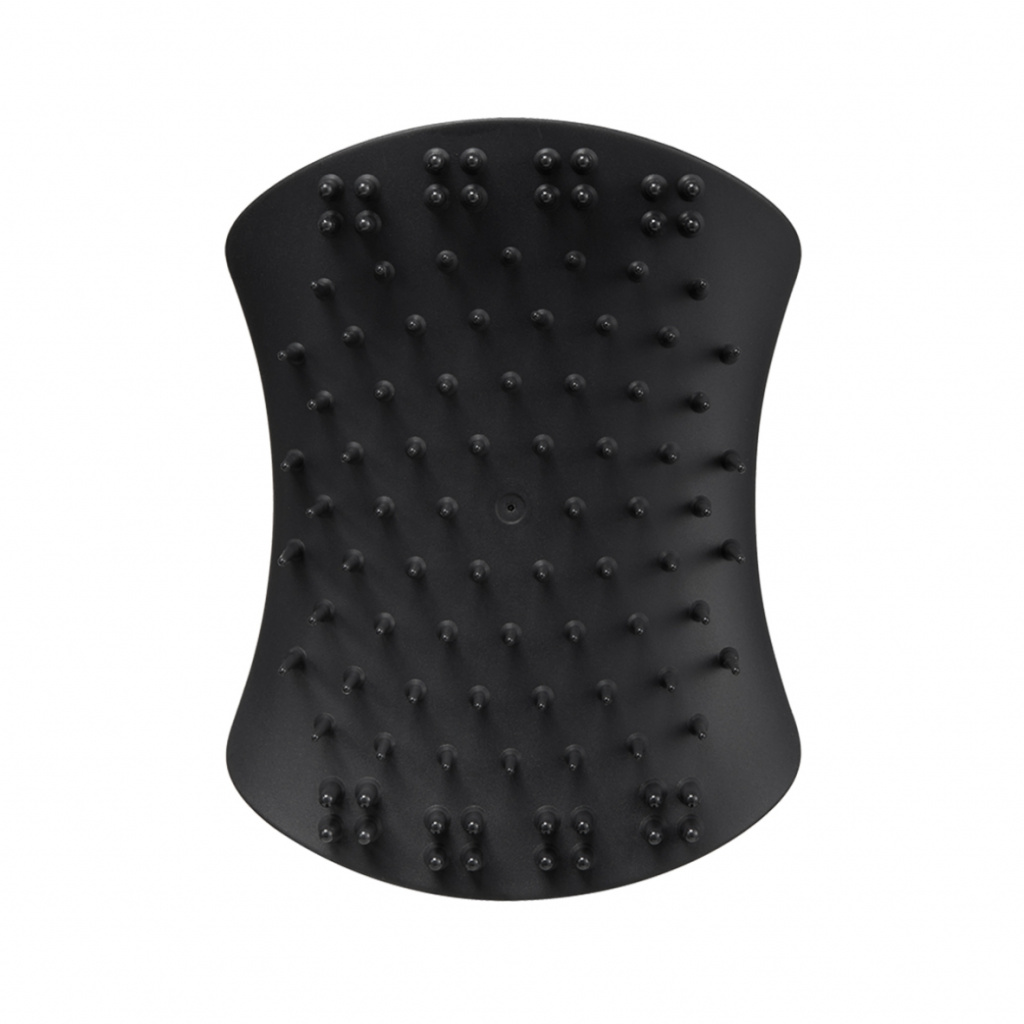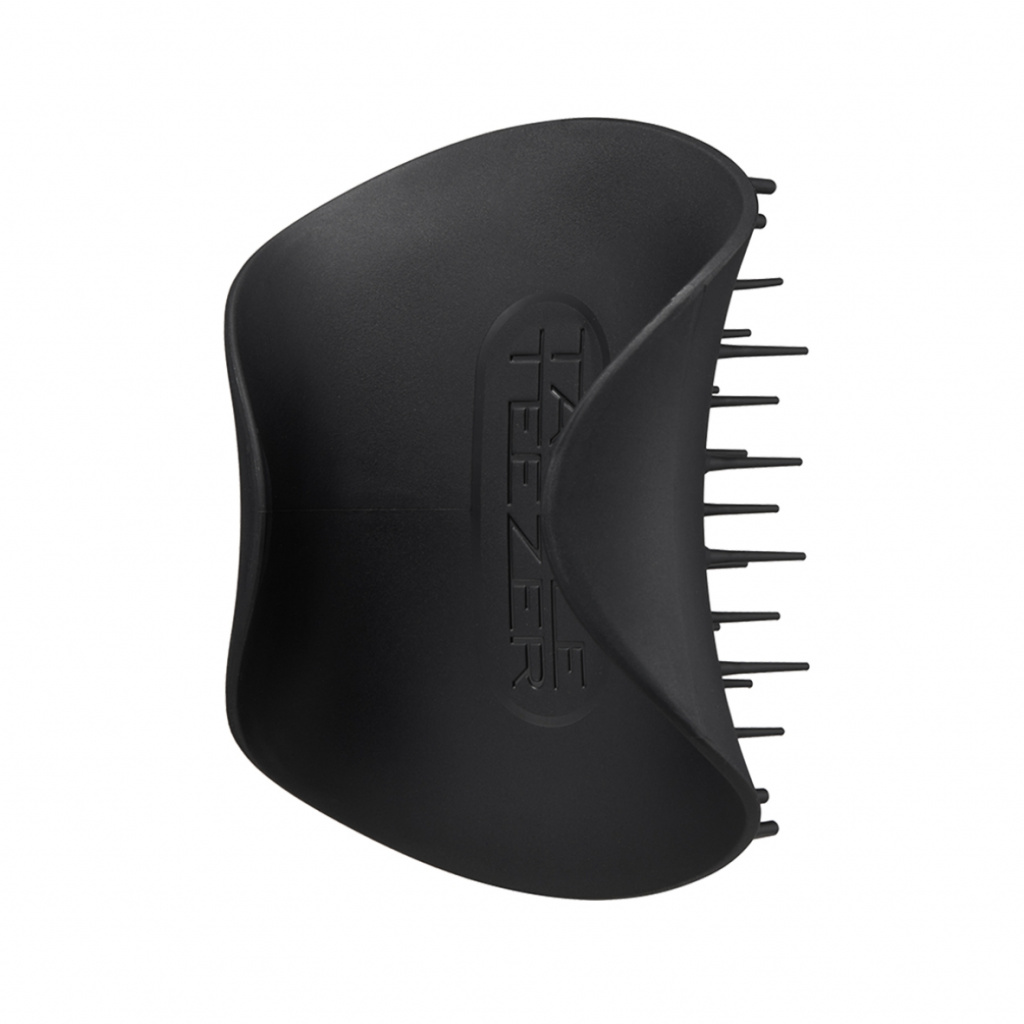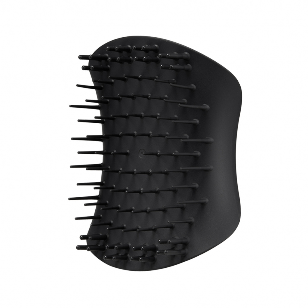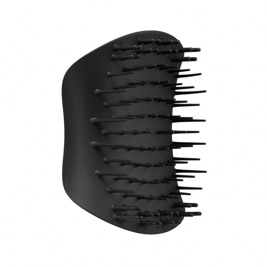 Tangle Teezer The Scalp Exfoliator and Massager Onyx Black — многофункциональная щетка для массажа головы в черном оттенке. Благодаря зубчикам двух размеров щетка выполняет сразу две функции: очищение и массаж. Длинные гибкие зубчики помогают очистить кожу головы, удаляя ороговевшие частицы кожи и оказывая мягкое отшелушивающее действие. Для интенсивного очищения используйте в паре с шампунем. Короткие плотные зубчики приятно массируют кожу головы, что снимает общее напряжение, а также способствует улучшению кровообращения и росту волос. Размер, форма и расположение зубчиков подобраны таким образом, что пряди не путаются во время использования щетки. Благодаря эргономичной форме и матовому покрытию щетку удобно держать в руке, и она не выскальзывает при контакте с водой. Подходит для применения на влажных и сухих волосах. Не предназначена для расчесывания волос, а также для использования на воспаленной и чувствительной коже. Не используйте с феном.