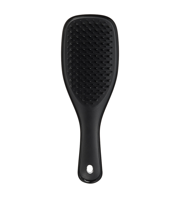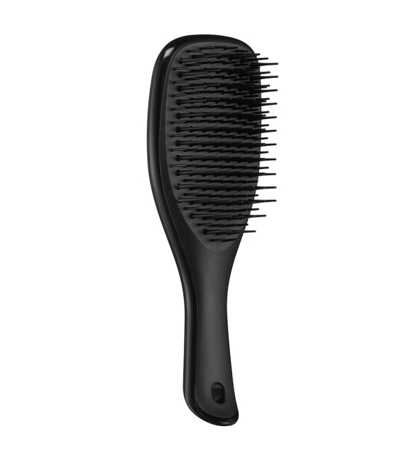 Расческа Tangle Teezer The Ultimate Detangler Mini Liquorice Black в стильном черном оттенке — мини-формат знаменитой модели The Ultimate Detangler. Запатентованные двухуровневые зубчики бережно распутывают влажные пряди, а также равномерно распределяют маски и бальзамы по волосам. Благодаря уменьшенному размеру расческу удобно брать с собой. Специальное отверстие на ручке позволяет прикрепить The Ultimate Detangler Mini к косметичке и иметь под рукой в любой ситуации. Результат применения — гладкие и блестящие волосы. Подходит для прямых и волнистых волос. Не используйте с феном.