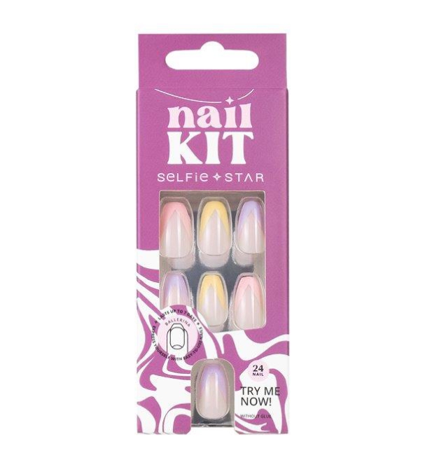 Selfie Star Набор накладных ногтей без клея Разноцветный френч, короткая длина / Nails kit without glue Colorful French, short length SSNK5929, 24 шт