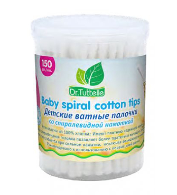 Dr.Tuttelle Детские ватные палочки со спиралевидной намоткой в пласт. боксе, 150 шт Рекомендации по применению