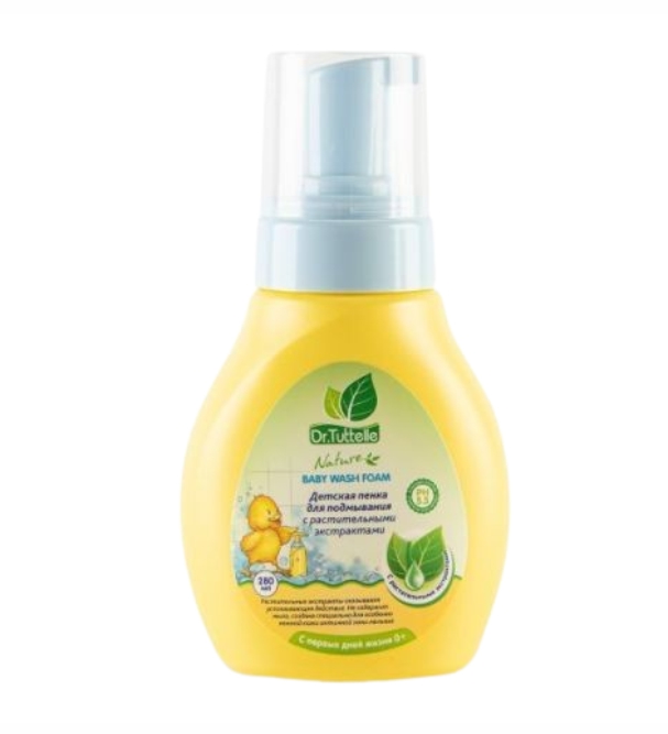 Детская пенка для подмывания малыша Dr.Tuttelle с растительными экстрактами специально разработан для младенцев с первых дней жизни. Удобный дозатор позволяет без труда определить необходимое количество средства для купания. Пенка с растительными экстрактами нежно очищает кожу ребенка и отлично подходит для профилактики покраснений и раздражений. Рекомендована как для купания перед сном, так и при смене подгузника. Продукт изготовлен без мыла и красителей и поэтому не раздражает даже самую чувствительную кожу. Состав: