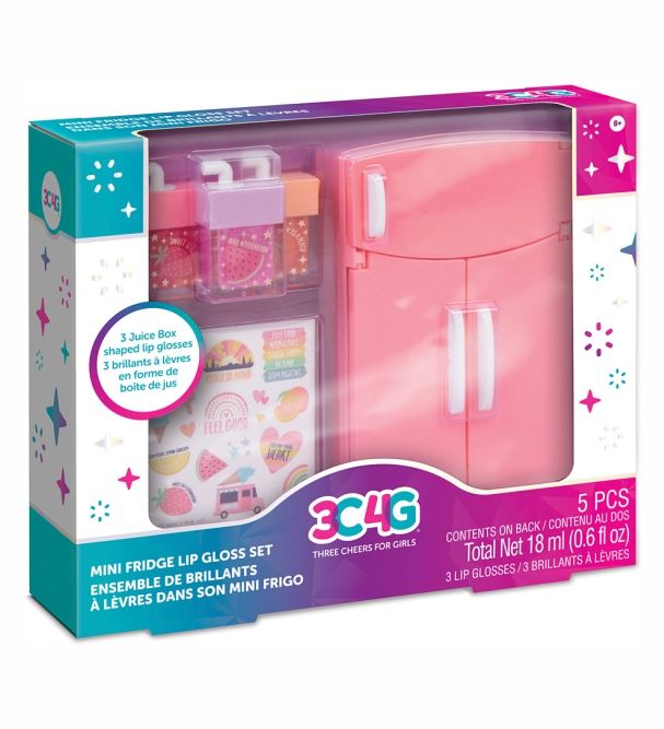 НАБОР БЛЕСКОВ ДЛЯ ГУБ МИНИ-ХОЛОДИЛЬНИК Получайте удовольствие, создавая забавные образы с 3 ярких блеска для губ в упаковке сока. Храните их в очаровательном мини-холодильнике, чтобы организовать их было легко и стильно! В комплекте: 1 игрушечный косметический холодильник, 3 блеска для губ, 1 лист наклеек.