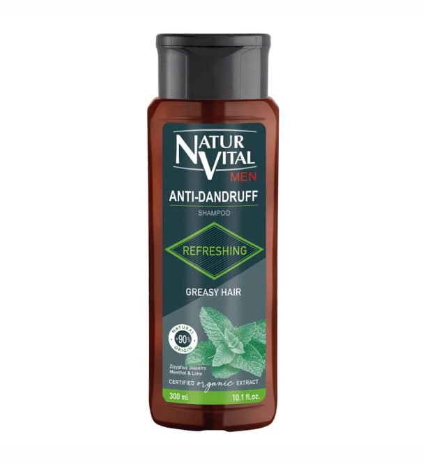 Шампунь от перхоти для жирных волос Natur Vital Anti-Dandruff Greasy Hair Shampoo служит не только эффективным очищающим средством для избавления кожи головы и волос от повседневных загрязнений, излишков себума и накопившихся токсинов, но и качественно устраняет перхоть. Кроме того, благодаря экстракту коры зизифуса жоазейро, экстрактам лайма и мяты, салициловой кислоте, цинку, шампунь освежает и естественным образом снижает салоотделение, нормализует обменные и барьерные функции кожи. Бетаин и пантенол помогают сохранить естественный уровень увлажненности, оберегают от негативного влияния внешних факторов, делают волосы более послушными и блестящими. Способ применения: