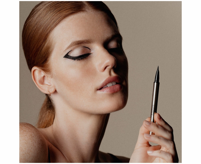 Наносить линию подводкой-фломастером по ресничному краю, слегка приподнимая линию у внешнего уголка глаз.