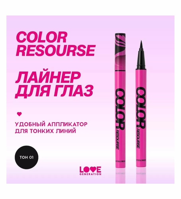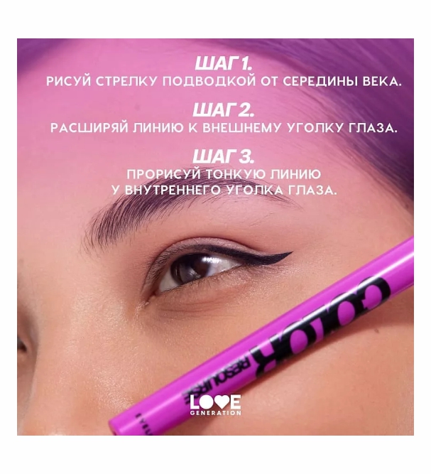 Нарисовала стрелки маркером COLOR RESOURSE, и уже в ресурсе! Выбирай, макияж с каким из шести оттенков отразит твой внутренний мир сегодня: черным, голубым, сиреневым, розовым, оранжевым или мятным. Маркером со стойкой пигментированной текстурой и фетровым аппликатором удобно выводить линии и расставлять акценты как на верхнем, так и на нижнем веке. Способ применения: