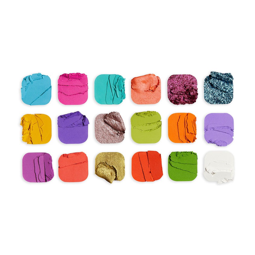 В палетку вошли: -13 матовых оттенков для креативных акцентных макияжей с яркими тенями; -5 сияющих оттенков для расстановки бликов в любом вашем образе.