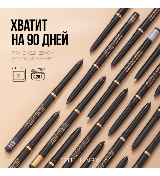 Автоматический карандаш для глаз Stellary обеспечивает легкое скольжение и быстрое нанесение насыщенного цвета. Мягкая комфортная текстура создает ровные линии и обеспечивает стойкий эффект. Выкручивающийся механизм позволяет контролировать длину грифеля, интенсивность линии и экономично расходовать средство. Карандаш создает ровное покрытие, а высокое содержание пигмента обеспечивает насыщенность цвета. Мягкая комфортная текстура подходит для нанесения вдоль внутренней линии роста ресниц. В ассортименте 12 оттенков: от классических черного и серого до креативных лилового и бордового. Макияж с автоматическим карандашом Stellary сделает взгляд более выразительным и привлекательным.