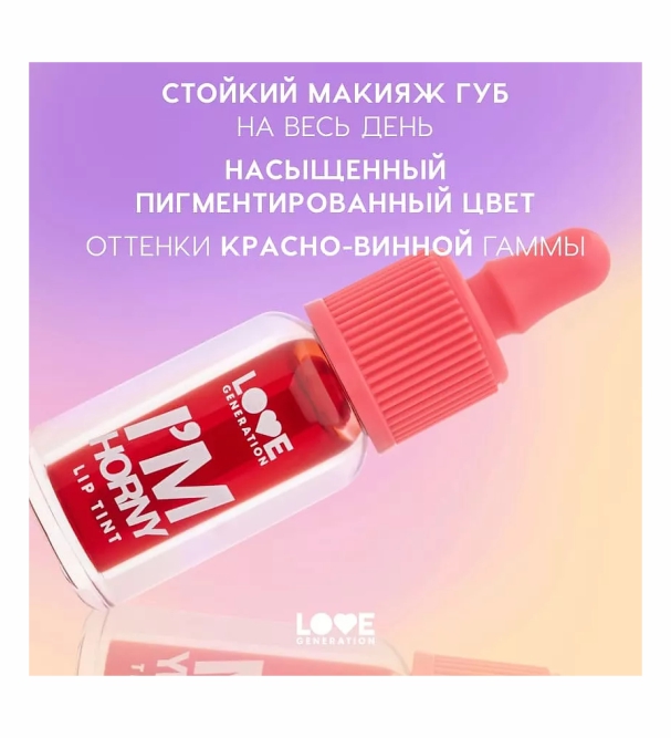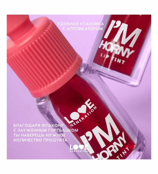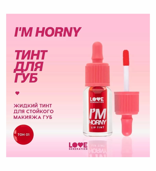 Вот бы зафиксировать хорошее настроение на весь день! Так это уже реально — нанеси на губы тинт I'M HORNY, и красивый стойкий цвет будет радовать тебя очень долго. Сотни поцелуев, любую погоду, дегустации еды и напитков — этот тинт выдержит все. В ассортименте три оттенка: 01 красный и 03 винный с жидкой текстурой, 02 персиково-розовый с кремовой текстурой и карамельным ароматом для влажного финиша на губах. Способ применения: