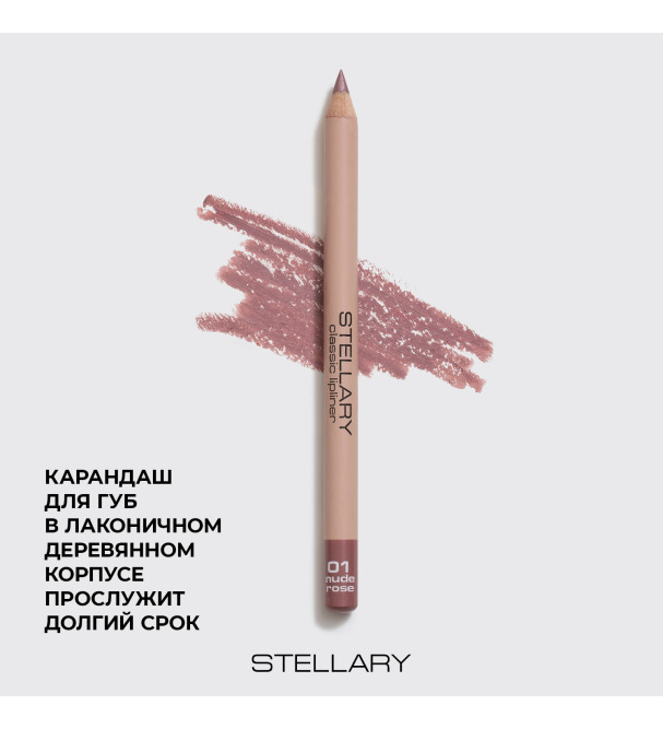 Карандаш для губ в деревянном корпусе для создания яркого насыщенного контура. Идеально подходит как для четких, так и для растушеванных линий, а также для нанесения на всю поверхность губ. Высокое содержание пигмента делает макияж с карандашом устойчивым, а цвет насыщенным. Пчелиный и карнаубский воски в составе формулы обеспечивают равномерное нанесение. Карандаш для губ Stellary предотвращает растекание помады за контур. В ассортименте 15 оттенков: от нюдовых до ярких.