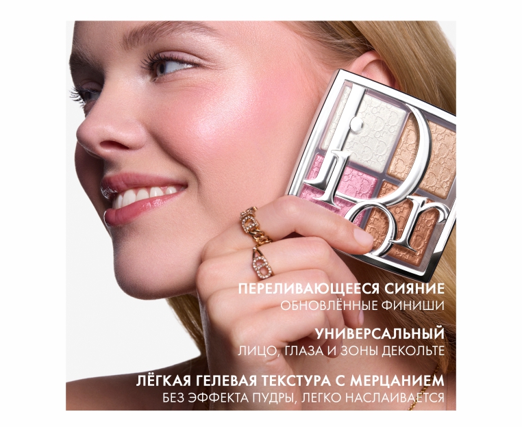 Культовая палетка хайлайтеров Dior для создания безграничного блеска. Обновленная универсальная палетка Dior Backstage Glow Maximizer подчёркивает лицо, глаза и зону декольте, предлагая ещё больше вариантов финишей: перламутровое, металлическое, глиттерное и дуохромное.