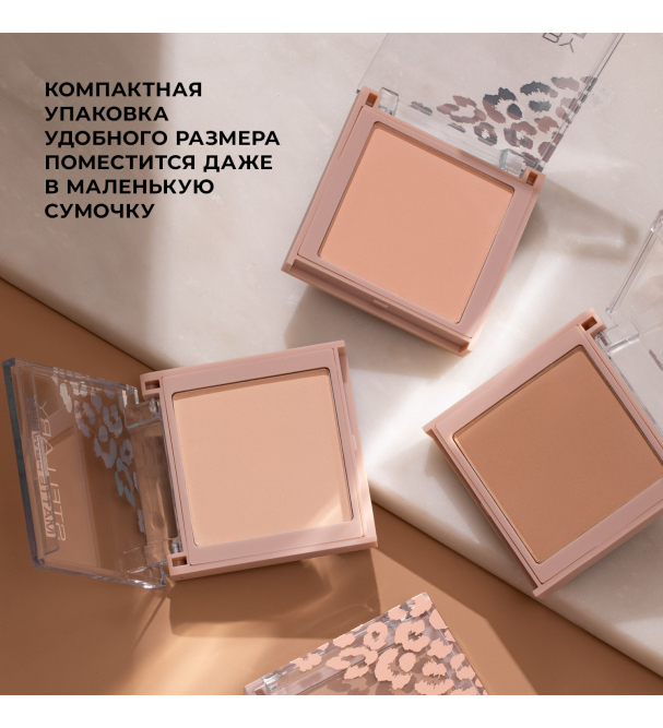 Компактная пудра Pressed powder для красивой матовой кожи и ровного тона. Шелковистая текстура на основе талька обеспечивает невероятно мягкое и комфортное нанесение. Каолин делает лицо матовым и бархатистым, выравнивает рельеф кожи. Частички слюды придают коже деликатное свечение. Дизайн футляра выполнен в элегантной бежевой гамме в сочетании с розовым золотом. В ассортименте четыре натуральных оттенка пудры: светло-бежевый, розово-бежевый, тепло-бежевый, песочно-бежевый.