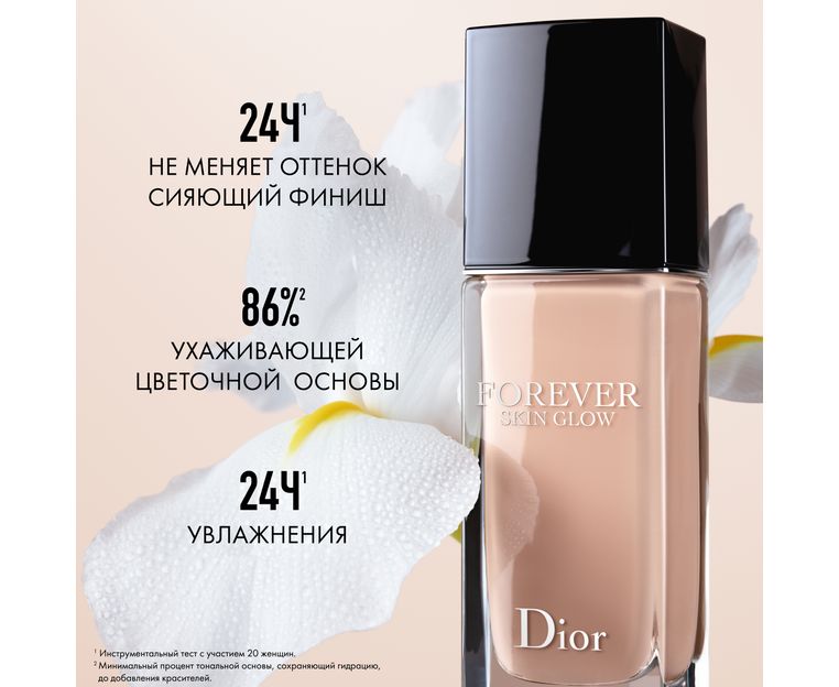 Dior Forever Skin Glow — это сияющий тональный крем от Dior, который делает цвет лица совершенным в течение 24 часов*. Благодаря особой формуле, которая на 86%* состоит из ухаживающей базы, это жидкое тональное средство интенсивно увлажняет кожу, позволяет ей дышать и улучшает её качество день за днём.