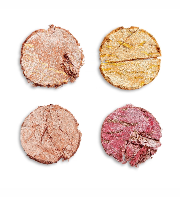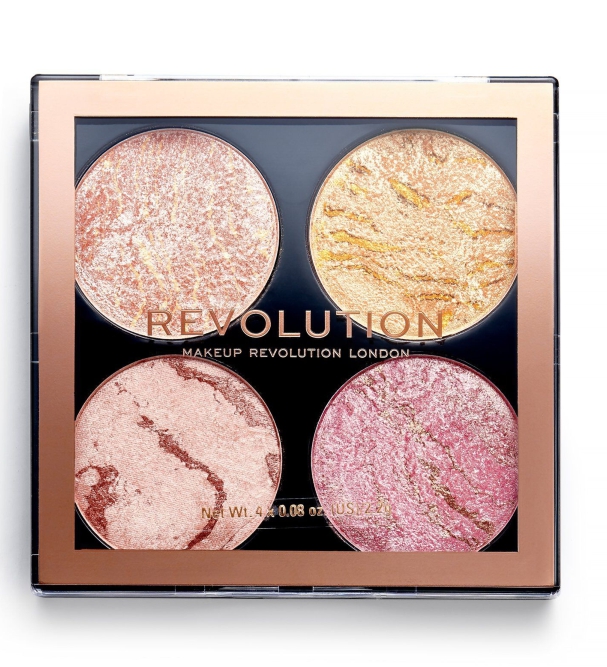 Цвет и сияние в квадрате! Палетка хайлайтеров для лица от бренда REVOLUTION MAKEUP CHEEK KIT 4 в 1 – это эффект "поцелованной солнцем" светящейся кожи.