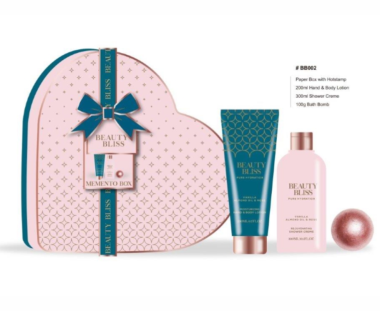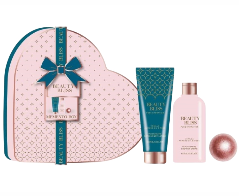 BEAUTY BLISS Vanilla, Almond Oil &Rose Heart Set Shower Creme 300мл+Body & Hand Lotion 200мл+Bath Fizzer 100гр