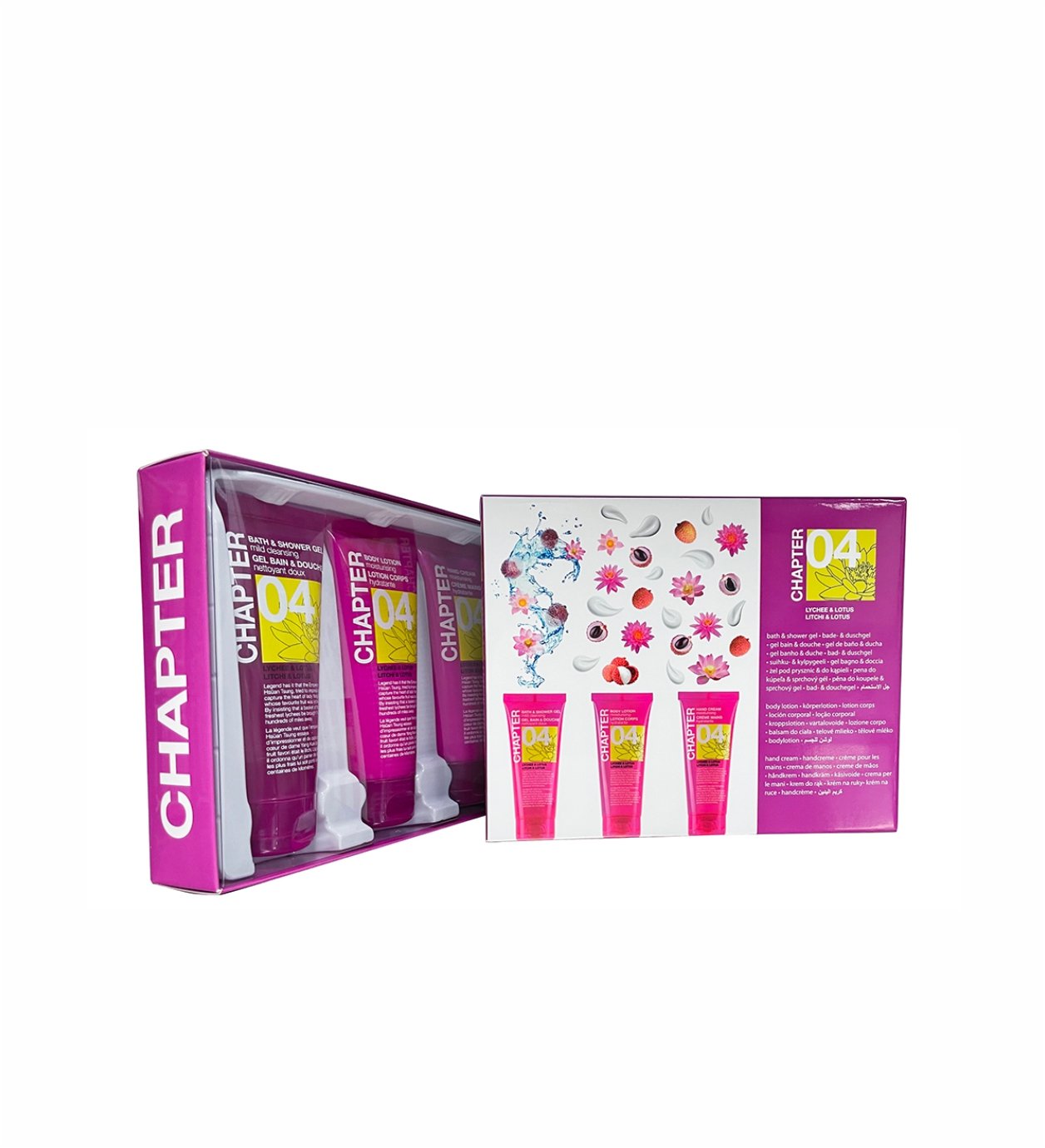 Mades Cosmetics CHAPTER 04/ подарочный набор (19x15,5x4 см) коробочка розового цвета с 3 тюбами в комплекта по 100 мл • гель для душа • лосьон для тела •крем для рук – аромат личи и лотоса