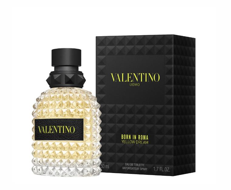 Плавные линии флаконов Born in Roma Yellow Dream контрастируют c декором в виде культовых пирамидальных заклепок Valentino и c ярко-желтым логотипом Valentino на черном фоне. Cтеклянные призмы, излучающие ободряющий желтый цвет, служат символом оптимизма и обновления.
