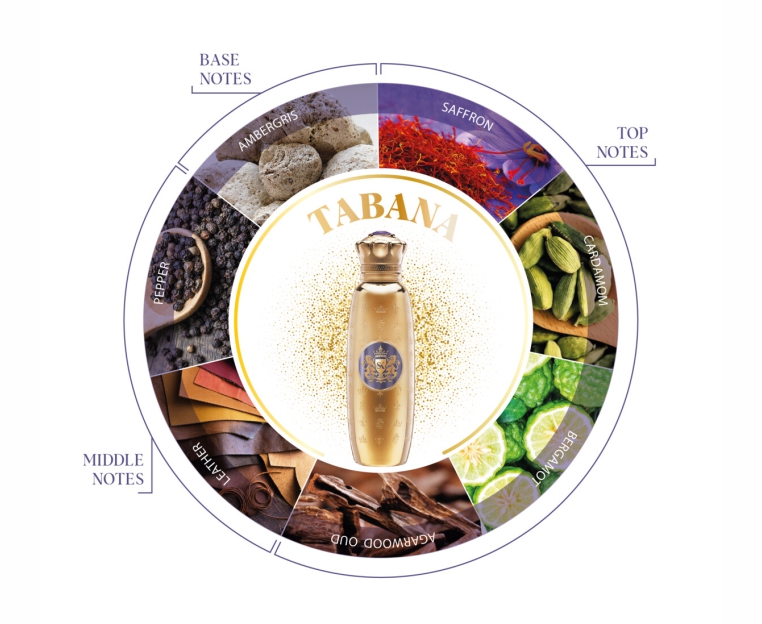 Верхние ноты: Шафран, кардамон, бергамот, уд