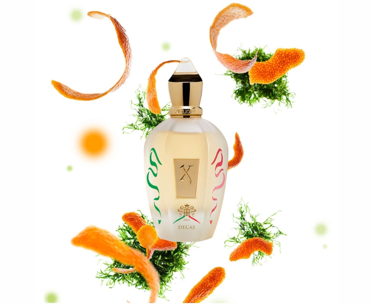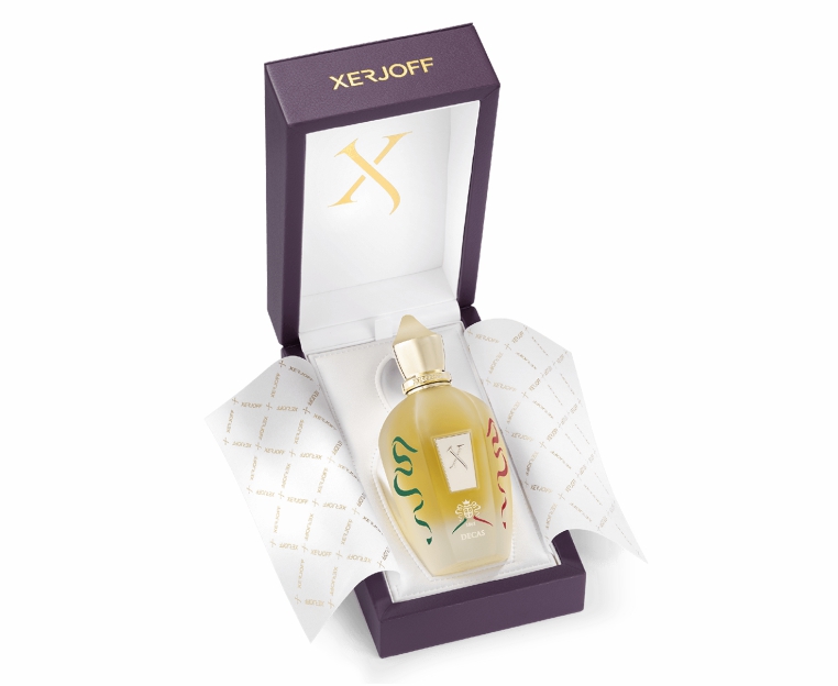 Аромат DECAS выпущен по случаю 10-летнего юбилея первого аромата коллекции Xerjoff 1861. Пикантное звучание сочного калабрийского мандарина вдохновляет и наполняет жизнерадостным настроением. Интригующий и роскошный дуэт пылкой туберозы и табака вызывает желание вдыхать аромат всё больше и больше, а чувственный итальянский оррис и драгоценный торжественный бензоин напоминают о величественной и царственной атмосфере старинной Италии. Дымный мягкий опопанакс окутывает аромат теплой бархатной вуалью, а оттенки мускуса, толуанского бальзама и ванили придают аромату глубокий запоминающийся шлейф.