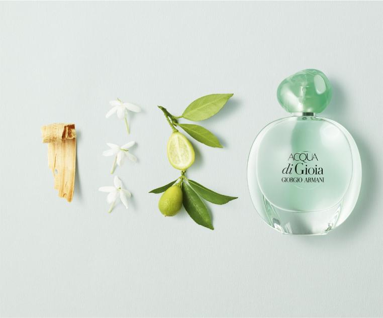 Базовые аккорды парфюма Acqua di Gioia - вода из недр земли и LMR Cedarwood Heart, натуральный ингредиент с измененным ароматным профилем.