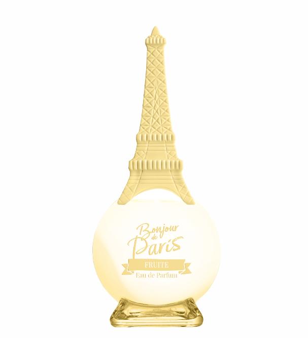 Bonjour de Paris – коллекция нежных женских ароматов, производимых на собственной фабрике в городе Грасс, - международной родине парфюмерии, - во Франции. Флаконы Bonjour de Paris представлены в виде Эйфелевой башни нежных, пастельных оттенков и олицетворяют собой приглашение на путешествие по мощеным улицам и садам самого красивого и романтичного города в мире – Парижу. Bonjour de Paris Fruite – Пионовый щербет, пикантный и игристый, концентрат женственности, свежести и радости. Озорной и озорной аромат с витаминным началом. Лимон, лайм и сорбет из зеленого яблока сочетают свои игристые нотки в веселом коктейле. Его нежное цветочное сердце имеет изысканный оттенок пралине и малинового миндального печенья. Верхние ноты: Лайм, Зеленое Яблоко, Лимонный Сорбет Ноты сердца: Пион, Пралине, Дурман Базовые ноты: Яблоня, Мускус, Белый Кедр