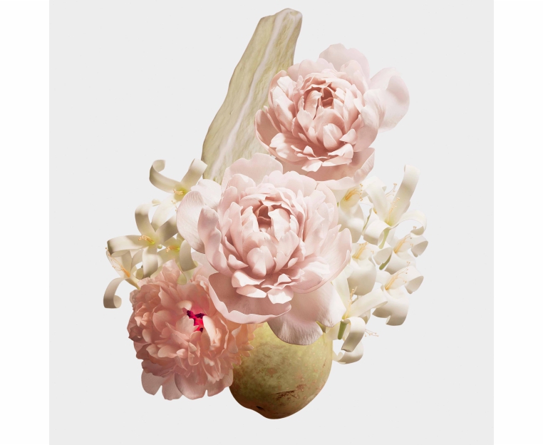 представляет собой игривую смесь цветущего пиона, радостных