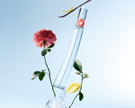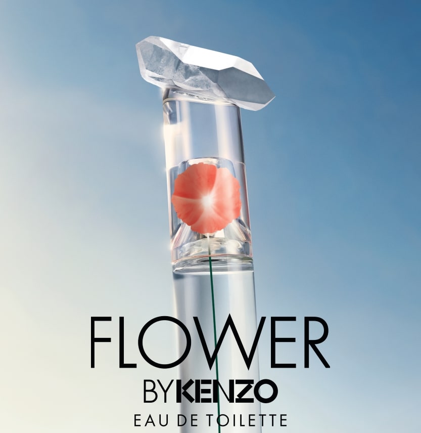 Туалетная вода FLOWER BY KENZO в букете стеклянных флаконов, устремляющихся в небесную высь, раскрывается маком в пастельных тонах, слегка озаренных светом. Оригинальный женский аромат, навеянный самой природой.