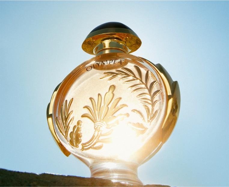 Триумфальный лавр окружает знаковый флакон Olympéa.