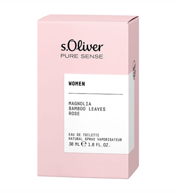 S. Oliver Pure Sense Eau De Parfum — женский древесный фруктовый цветочный аромат, выпущенный в 2022 году. Парфюмерная композиция рассказывает об искусстве жить в ладу с собой. Только ценя свою индивидуальность и следуя своим идеям можно найти гармонию, и лишь обретя ее в себе, человек способен заметить красоту и ценность окружающего его мира. Начальный аккорд: солнечные зайчики лимона, тропическая кисло-сладкая нежность ананаса и элегантный бергамот. Сердце: романтичная магнолия, благоухающая роза и зелень бамбука, добавляющая легкий освежающий ветерок. В шлейфе аккорд дерева, выброшенного на морской берег и высушенного солнцем, шелковый амброксан и мускус.