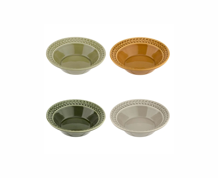 Этот набор из четырех мисок для хлопьев включает по одной в янтарном, каменном, мохово-зеленом и лесном цветах,