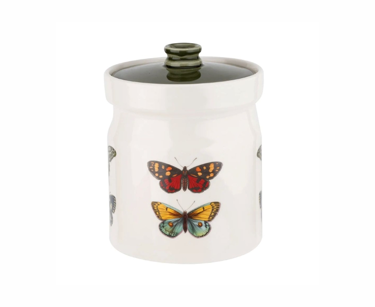 Эта емкость Botanic Garden Harmony 18 см с красивыми бабочками на белом корпусе имеет крышку цвета лесной зелени и