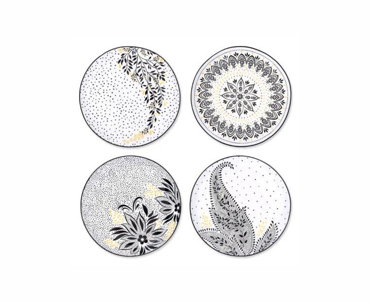 «Богемия», «Мандала», «Лотос» и «Пейсли». Дизайн мягко обвивает изгибы каждой тарелки и украшен золотыми деталями.